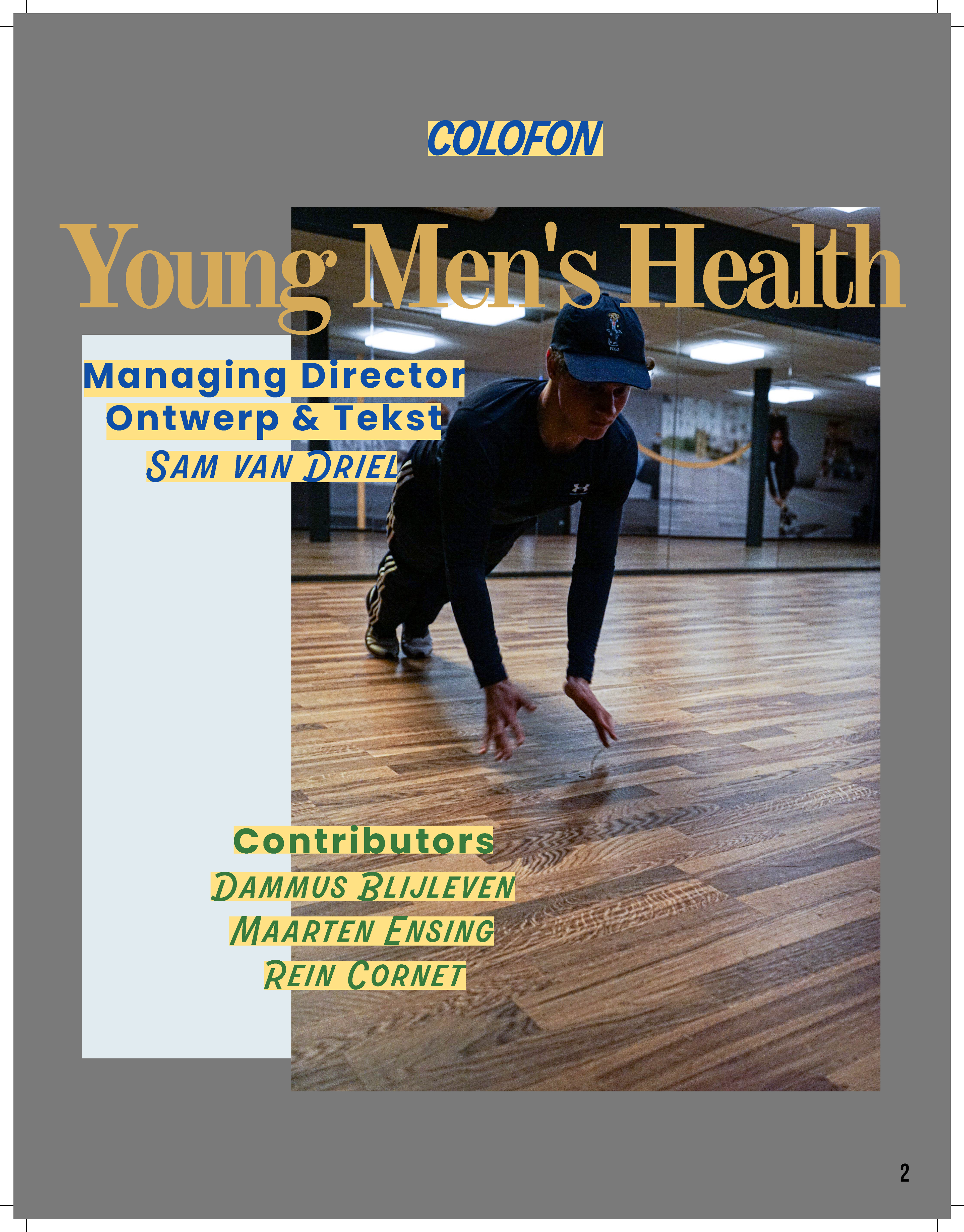 In mijn eerste jaar heb ik tijdens het door mijn uitgekozen keuzedeel: vernieuwing tijdschriften journalistiek. Een geheel nieuwe versie van de Men’s Health gemaakt. De bedoeling was om een magazine ge vernieuwen voor je eigen doelgroep (18-24 jaar). Van alle magazines wekte de men’s health mijn interesse omdat ik zelf ook van sporten houd. In de men’s health miste ik gericht informatie voor jonge mannen. Daarom bedacht ik de Young Men’s Health als handleiding voor jonge sporters. Over de teksten en rubrieken ben ik inhoudelijk best tevreden. Een minpuntje was de tekst opmaak, op de uitgeprinte versie kwam stond dit op sommige pagina’s té dicht op elkaar. Dit was namelijk mijn eerste kennismaking met een groot project wat er het meest professioneel uitziet in InDesign. Helaas omdat ik weinig uitleg kreeg ben ik met vele in de klas verder gegaan in adobe express. Desallniettemin vind ik het magazine overall goed gelukt.